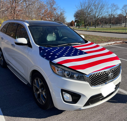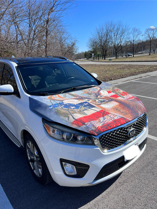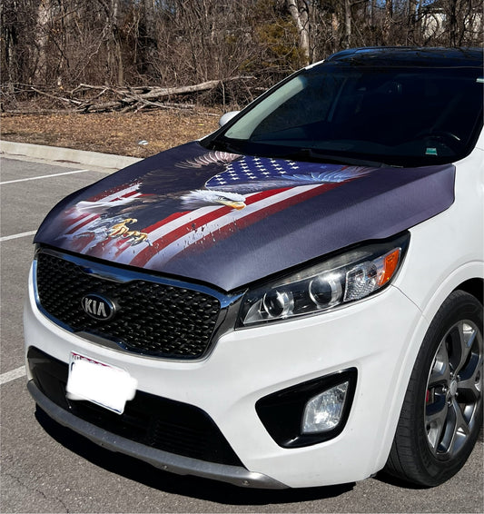 Sold outAmerican Flag & Eagle Car Hood Cover